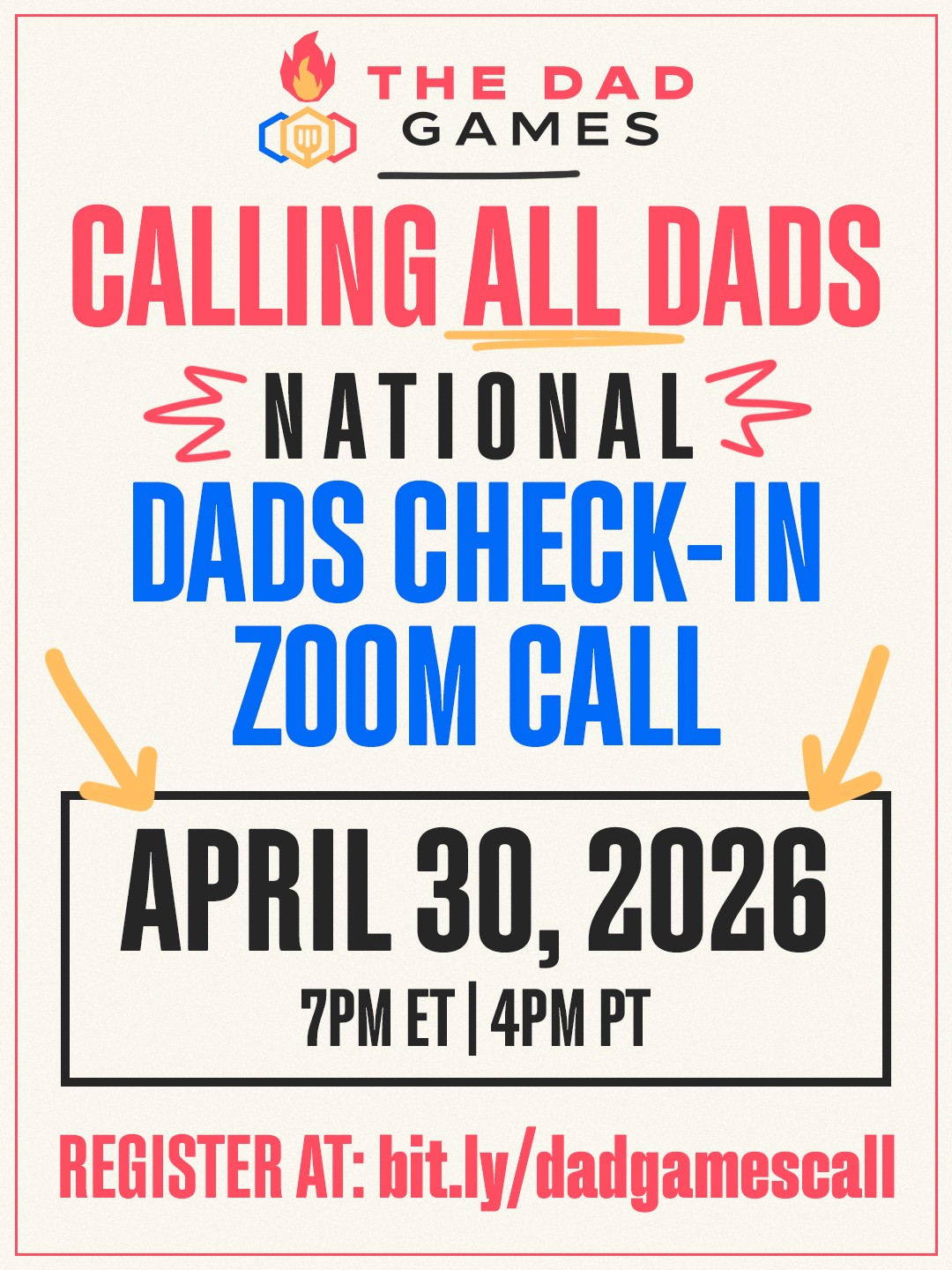 Pull up! On Thursday, April 30th at 7pm ET, we're hosting our Calling All Dads call.